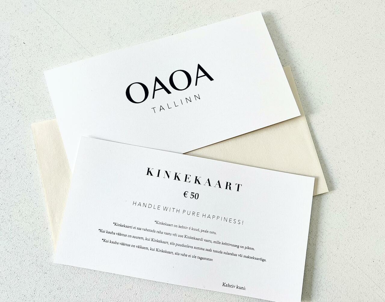 Füüsilised Kinkekaardid on saadaval 50€ vääringus.