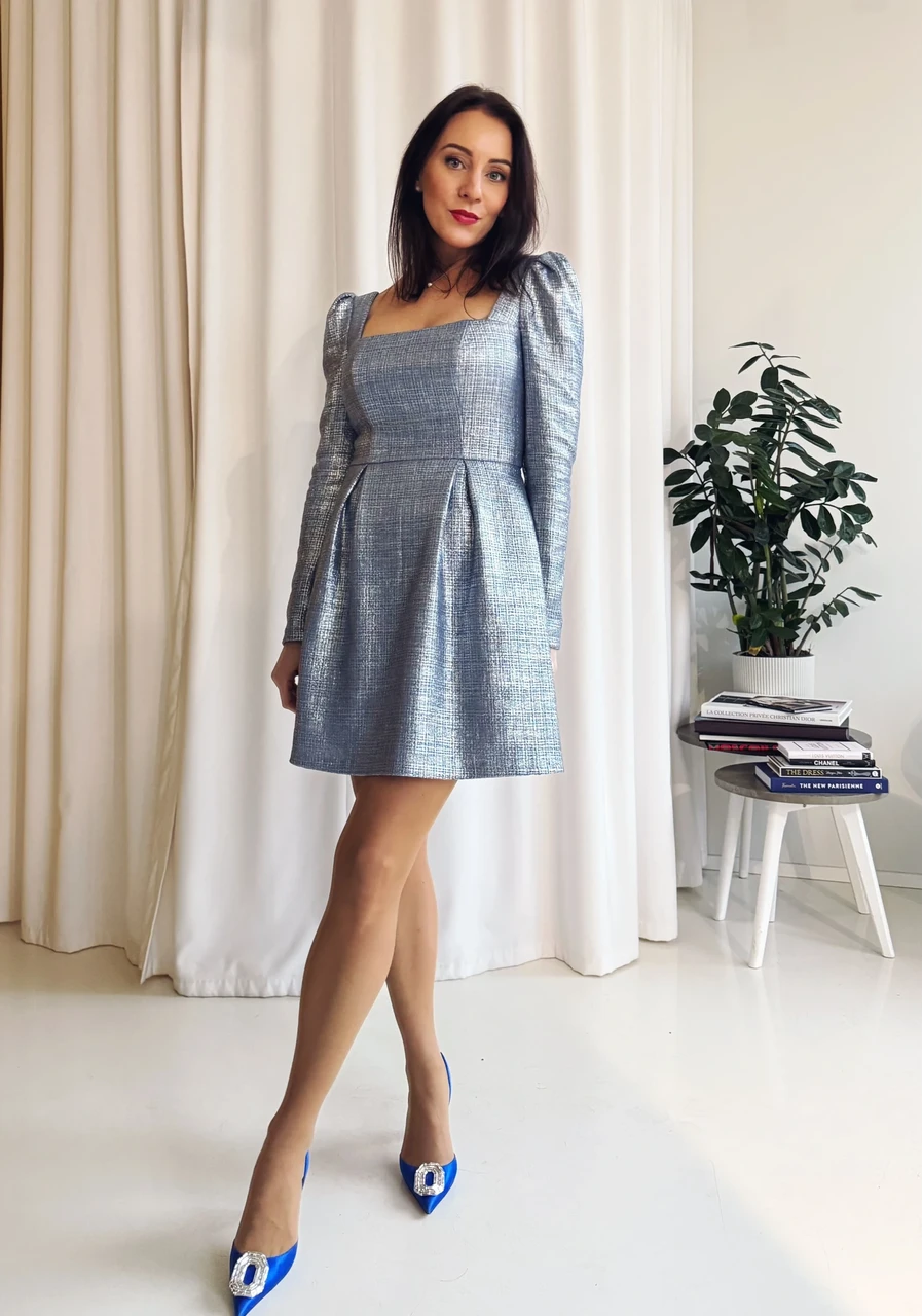 Too oma hetkedesse sära ja naiselikku graatsiat selle luksuslikult tekstuurse mini-kleidiga. Kleidi skulptuurne lõige rõhutab kaunilt taljet, samal ajal kui täidlane A-lõikeline seelik lisab liikumisel kerget elegantsi.