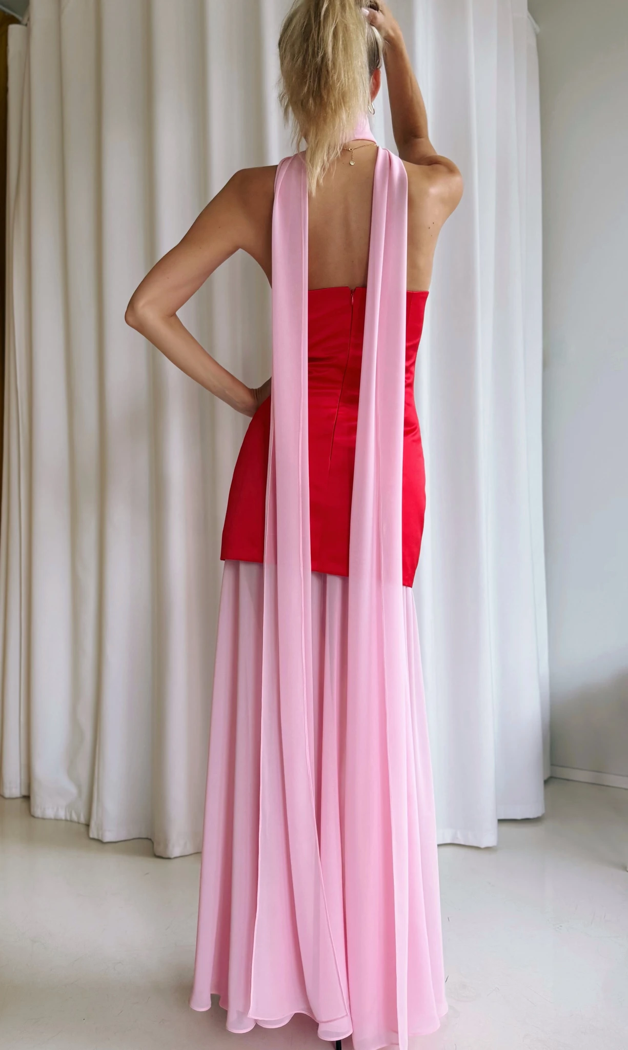 Noelle on kaunis kahes versioonis kantav kleit, mis ühendab endas minimalismi ja elegantsi. Klassikaline rinnaosaga lühike kleit muutub hetkega glamuurseks õhtukleidiks tänu õhulisele läbipaistvale pikale seelikule, millel on pikk lõhik. Satiinkangas toob esile naiselikkuse ja graatsia, samas kui stiilsed detailid annavad võimaluse mänguliselt stiili muuta vastavalt sündmusele.