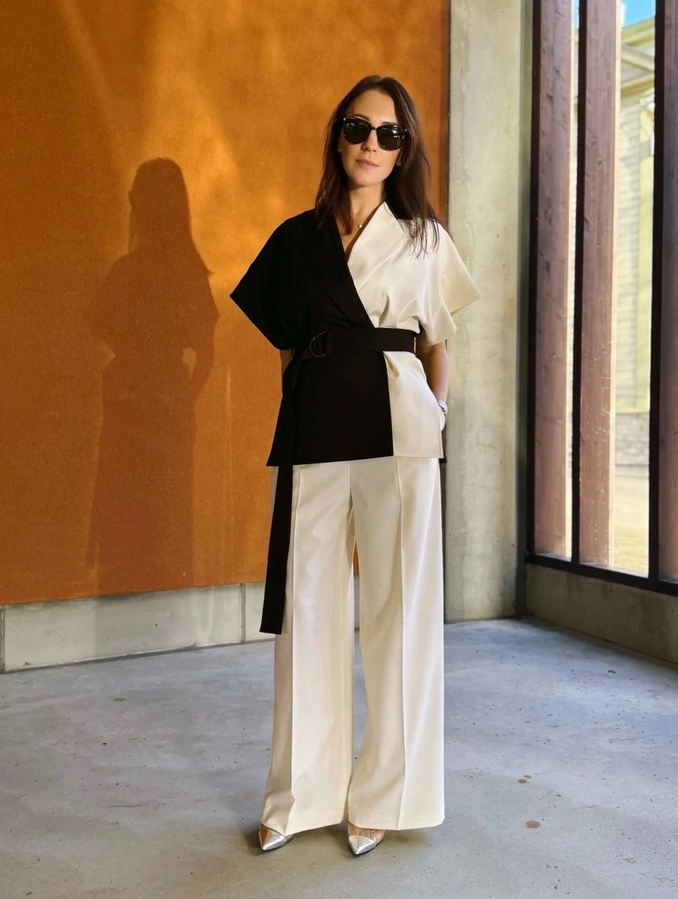 Elegantne ja ajatu kaheosaline komplekt, mis ühendab minimalistliku disaini ja maksimaalse mugavuse. Kostüüm on valmistatud kõrgekvaliteedilisest wool twill kangast, mis hoiab vormi ning kortsub minimaalselt – ideaalne valik nii tööpäevaks kui ka pidulikumateks sündmusteks.