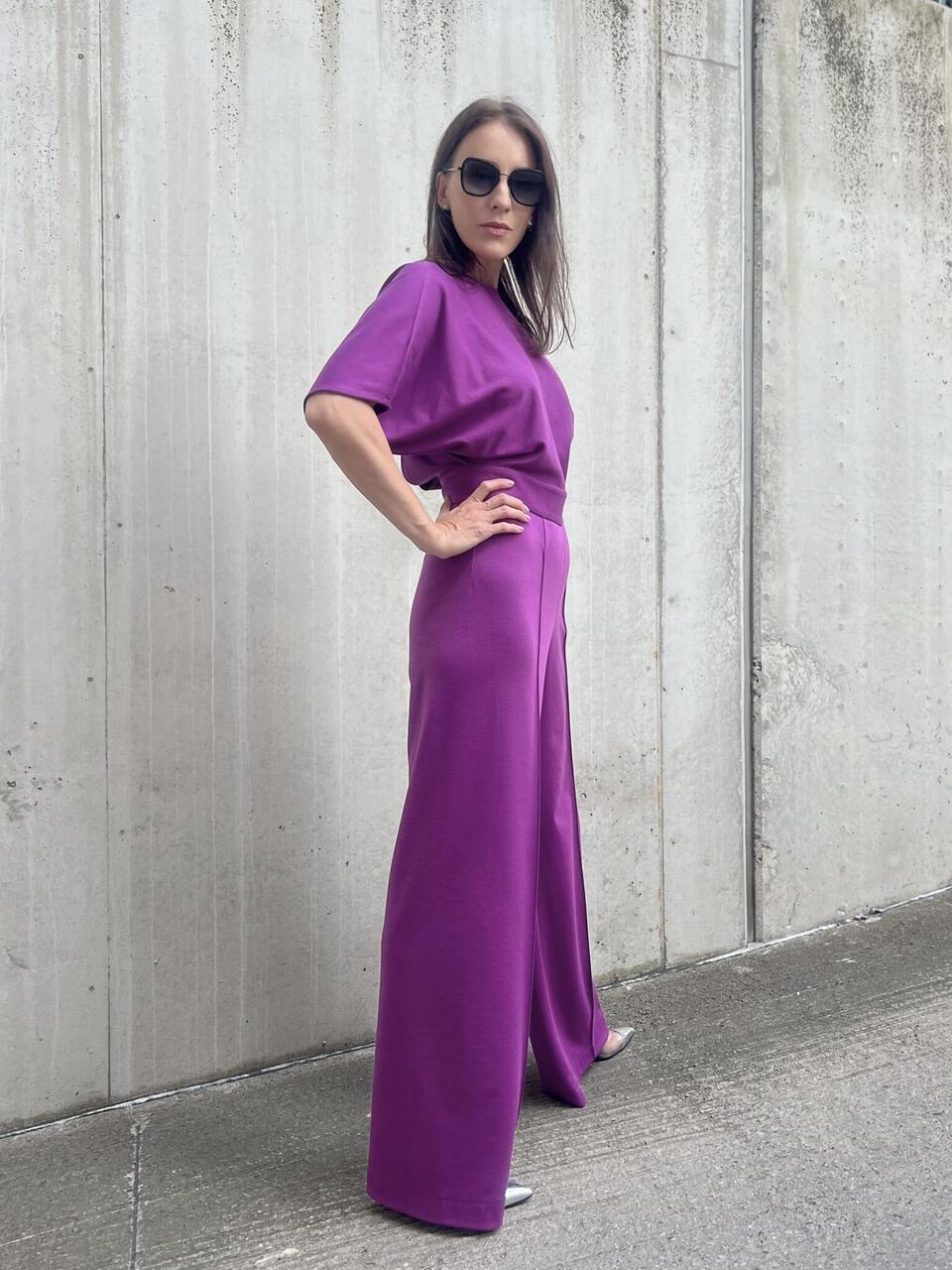 See pükstükk on ideaalne valik kaasaegsele ja stiilsele naisele. Minimalistlik disain, dolman varrukatega ülaosa ja kõrge vöökohaga laiad püksid loovad elegantse ja voolujoonelise silueti. Materjal on mugav ja hästi langev, pakkudes nii mugavust kui ka šikki välimust. Täiuslik valik nii igapäevaseks kandmiseks kui ka erilisteks sündmusteks.