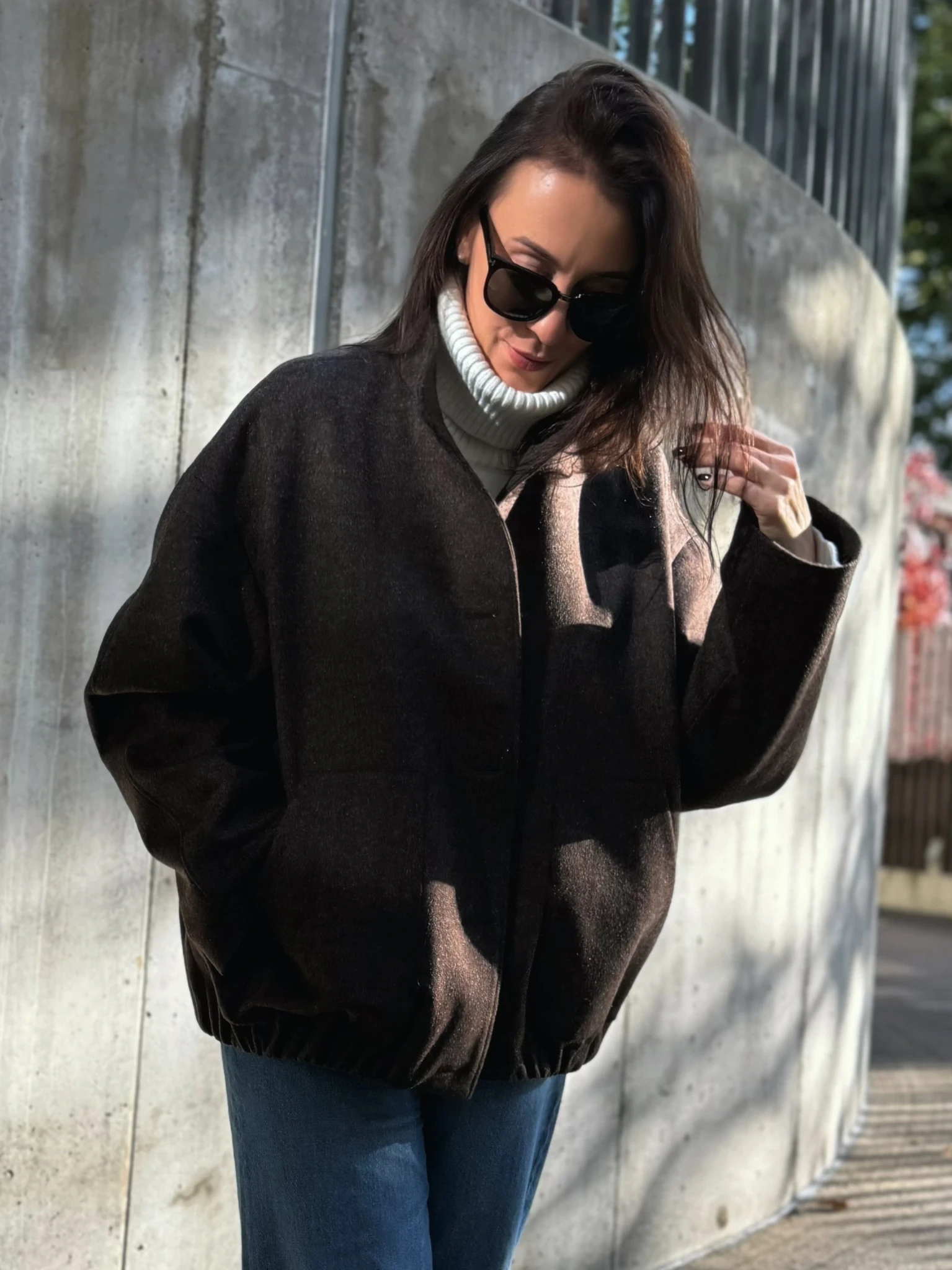 Ajatu ja pehmelt vormitud siluetiga bomber, valmistatud 100% neitsivillast – materjalist, mis on loomulikult soe, hingav ja luksusliku tekstuuriga.