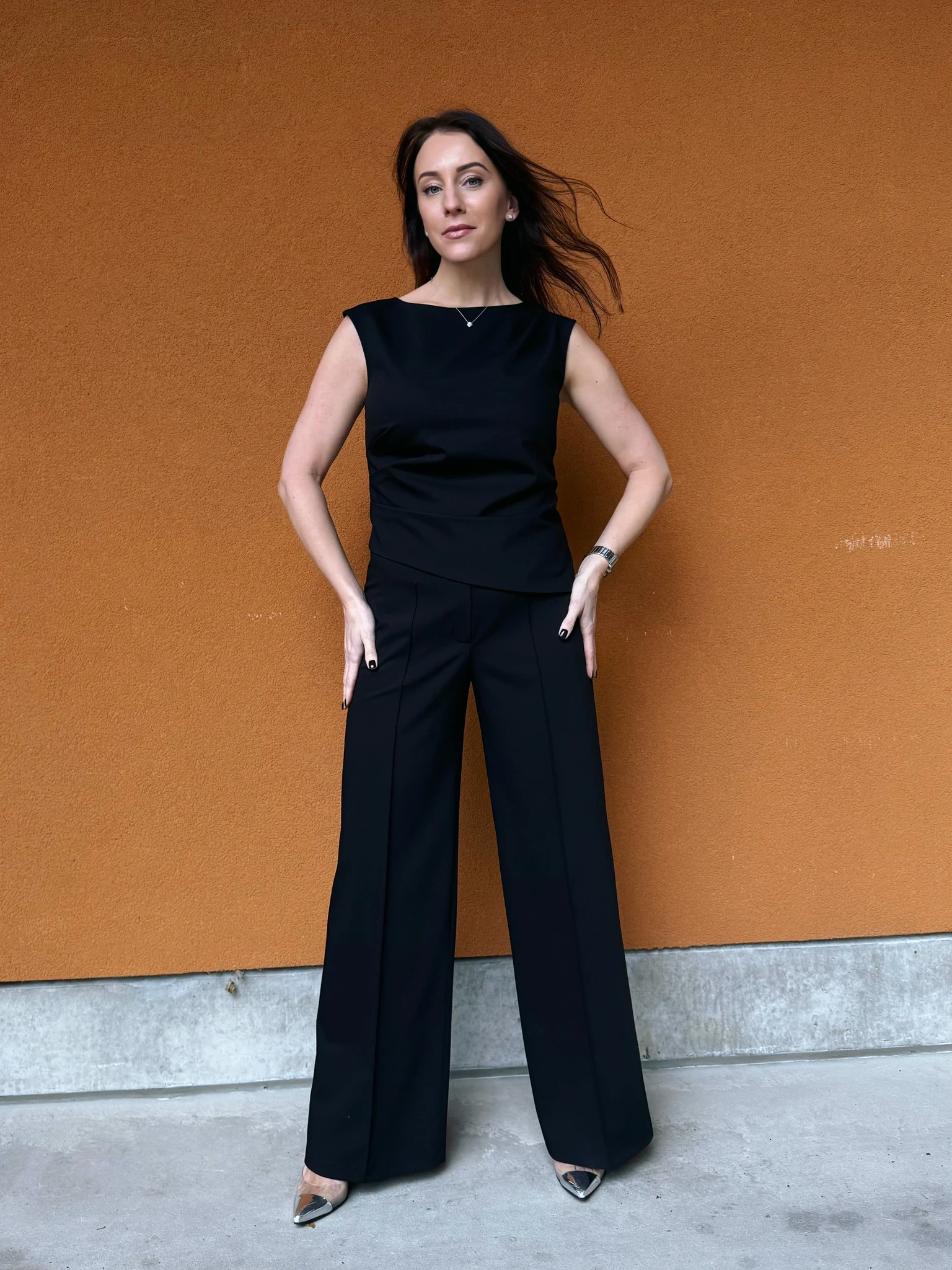 Ees läbiõmmeldud viik, mis muudab säärejoone visuaalselt pikemaks ja hoiab püksid alati korrektse väljanägemisega. Kogupikkus koos värvliga 110cm