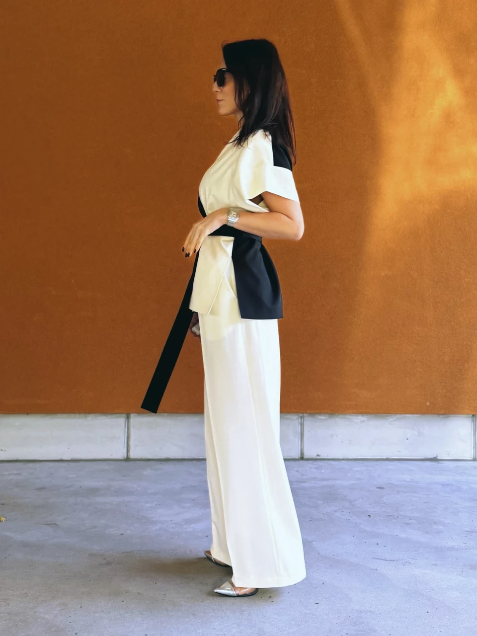 Kanna kontrastse OAOA kimono-topiga, et luua graafiline, ent ajatult elegantne komplekt.