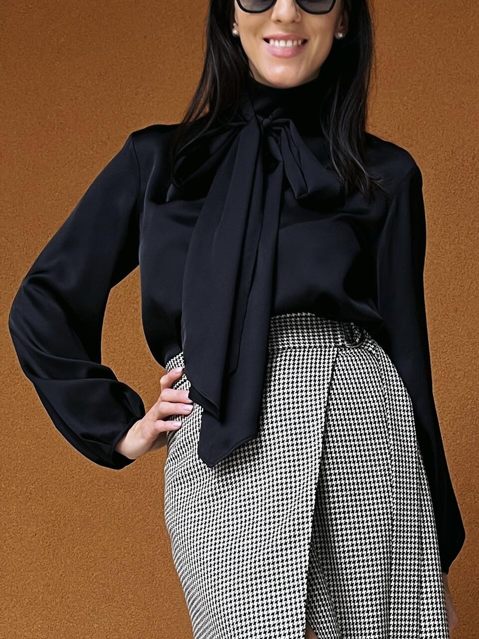 This feminine blouse is practical to wear, both over skirts and trousers. Tie the scarf into a fancy tie, loosely in the front or tie it in the back, try and test yourself!