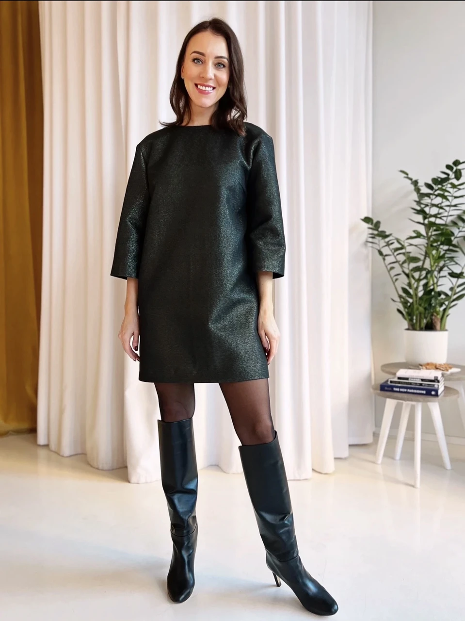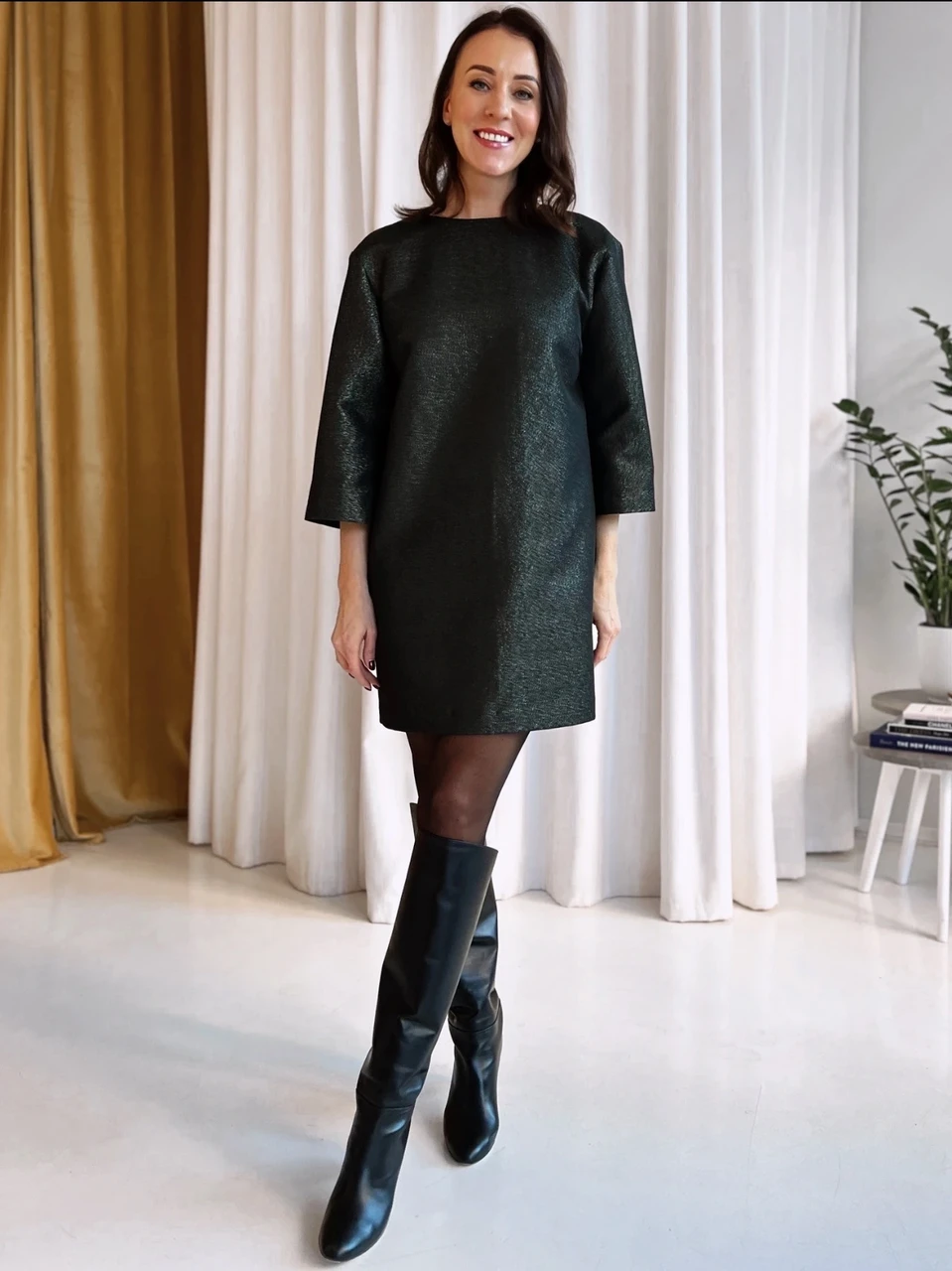 Aegumatu ja stiilne zakard kleit hõbedase niidiga.Kleidil on lihtne sirge lõige ning poolpikad varrukad, andes modernse ja maitsekalt tagasihoidliku ilme.